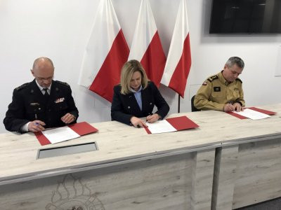 W dniu 15 października br. w Komendzie Wojewódzkiej Państwowej Straży Pożarnej w Gdańsku podpisano porozumienie pomiędzy Piotrem Sochą, Pomorskim Komendantem Wojewódzkim PSP w Gdańsku, Alicją Żurawską, Starostą Kościerskim i Tomaszem Klinkoszem, Komendantem Powiatowym PSP w Kościerzynie.