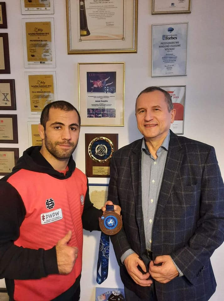 Rozbrzmiewa jeszcze echo sukcesu Gevorga Sahakyan na Mistrzostwach świata w Oslo. Jego brązowy medal sprawił wielu osobom dużo satysfakcji. Niewątpliwie jedną z nich jest wieloletni przyjaciel kartuskich zapasów – Pan Jan Koszałka, prezes PHU Koszałka. Pan Jan jest jedną z osób najdłużej współpracująca z sekcją zapaśniczą GKS Cartusia Kartuzy. Śmiało można powiedzieć, że jakaś część sukcesu jest także jego autorstwa. Więc cóż mógł zrobić nasz mistrz ? Po prostu podziękować, podzielić się wrażeniami i zrobić pamiątkowe fotografie. Jak zawsze w tej firmie wszyscy z uśmiechem, sympatyczni, widać, że sukces wszystkim przypadł do gustu. Tą drogą zawodnik i trenerzy składają serdeczne podziękowania. Mamy nadzieję, że jednym z medali, które zaprezentujemy w przyszłości będzie medal olimpijski z Paryża.