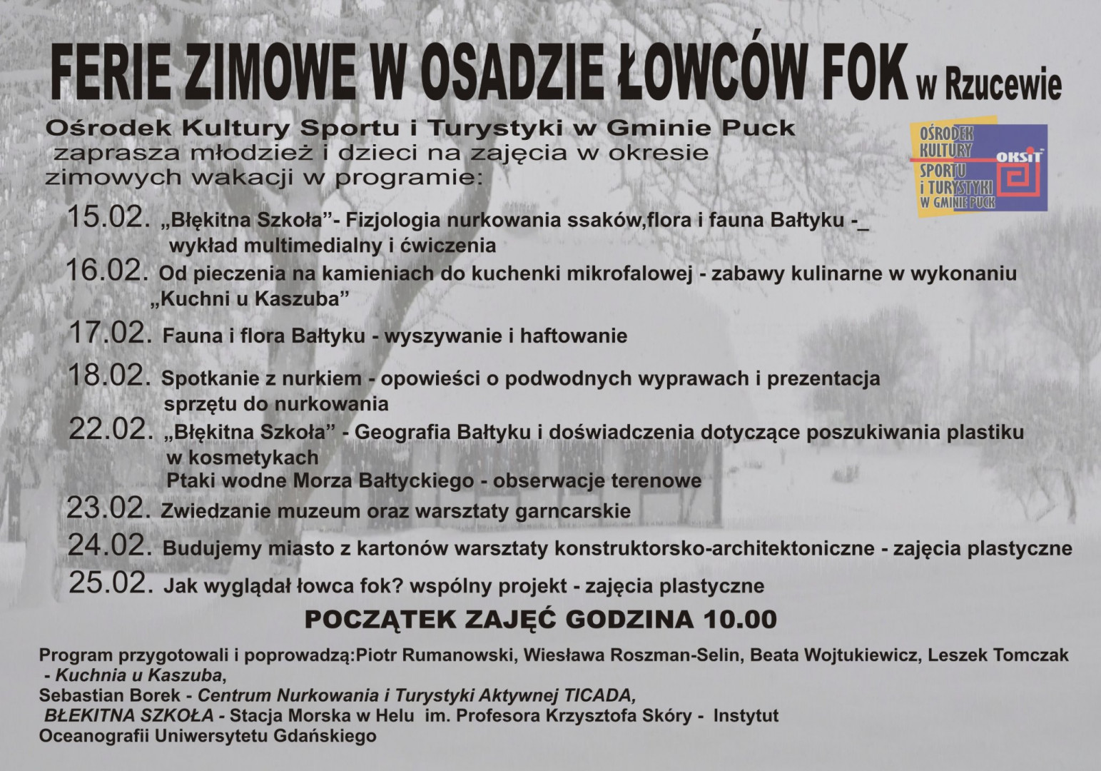 Dodatkowo, urozmaicone ferie przygotowała także Osada Łowców Fok w Rzucewie.