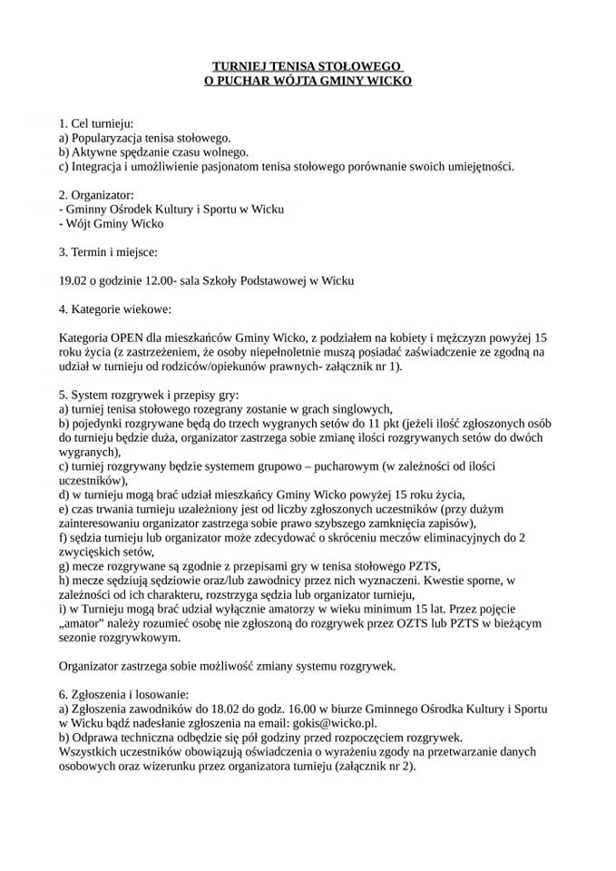 Jak podaje portal internetowy Powiat Lęborski, Gminny Ośrodek Kultusy i Sportu w Wicku zaprasza wszystkich miłośników tenisa stołowego i nie tylko, na aktywne spędzenie czasu podczas ferii zimowych 2022. W swoim artykule portal pisze: