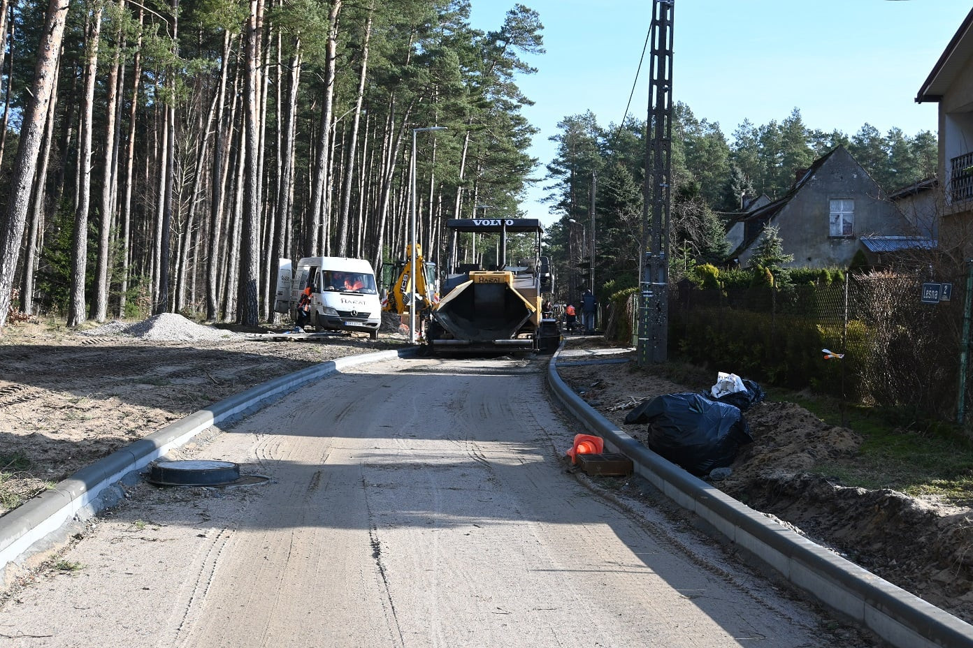 Cyt.: "(...) Po utwardzeniu, odwodnieniu, montażu sieci i lamp oświetleniowych, realizowane są prace związane z położeniem nowej nawierzchni drogi.