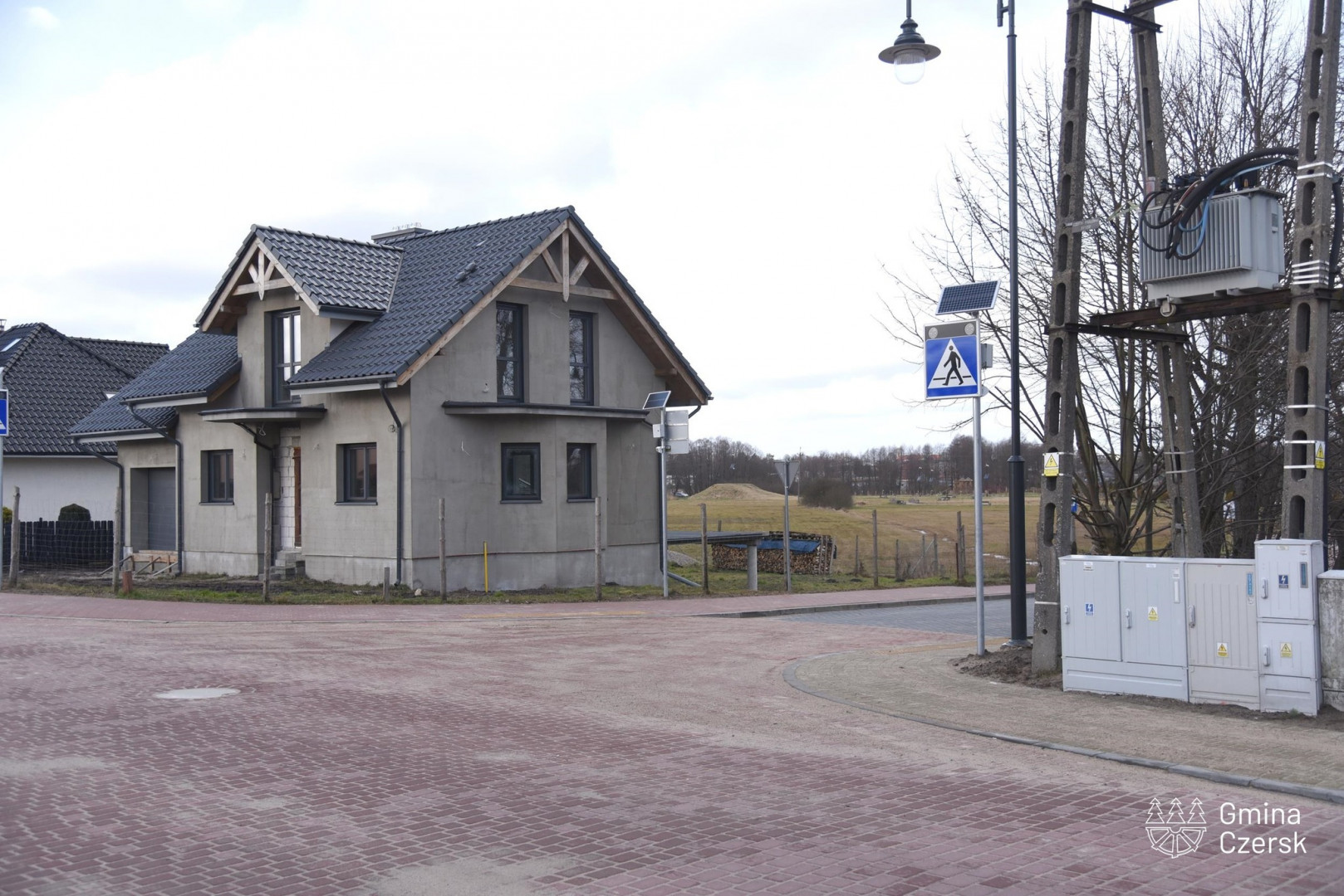 Cyt.: "(...) Ulice zyskały nowe oznakowania, w tym aktywne oznakowanie D6 z zasilaniem solarnym. W ramach prac wybudowano studzienki z przykanalikami kanalizacji deszczowej."