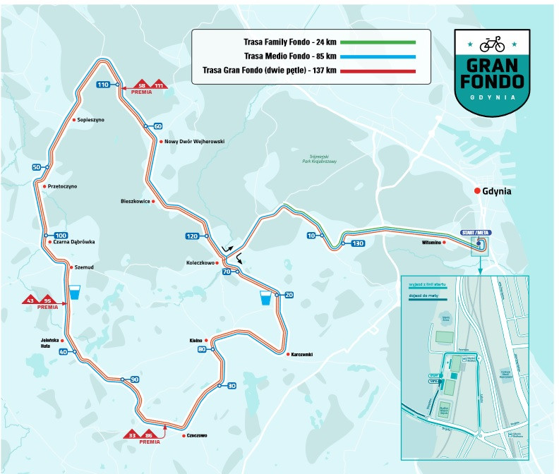 Cyt.:"Kolarski wyścig Gran Fondo Gdynia zaplanowano na niedzielę 15 maja br. W wyścigu rywalizują amatorzy. Aby zagwarantować uczestnikom maksymalne bezpieczeństwo z ruchu zostaną całkowicie wyłączone odcinki dróg, gdzie przebiega trasa, w związku z tym pojawią się czasowe utrudnienia komunikacyjne.(...)"