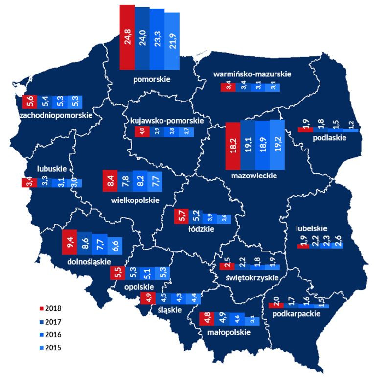 – W 2018 r. widoczny był wzrost udziału Przewozów Regionalnych w stosunku do poprzednich lat, co wiązało się m.in. z przekazaniem części relacji przez PKP SKM (np. z Trójmiasta do Słupska) oraz przejęcie pod koniec roku obsługi części połączeń Pomorskiej Kolei Metropolitalnej – informuje Urząd Transportu Kolejowego.