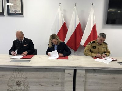 W dniu 15 października br. w Komendzie Wojewódzkiej Państwowej Straży Pożarnej w Gdańsku podpisano porozumienie pomiędzy Piotrem Sochą, Pomorskim Komendantem Wojewódzkim PSP w Gdańsku, Alicją Żurawską, Starostą Kościerskim i Tomaszem Klinkoszem, Komendantem Powiatowym PSP w Kościerzynie.