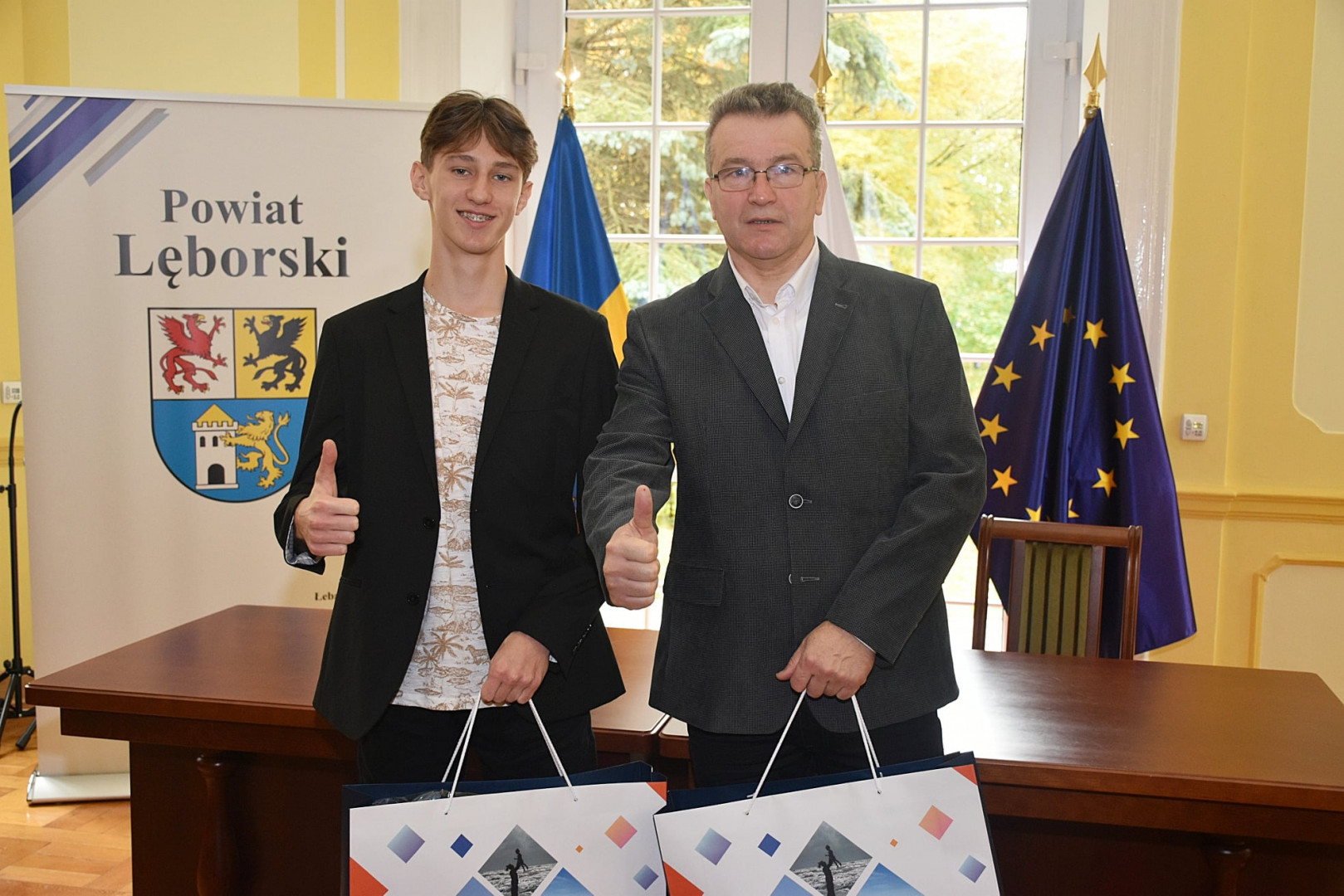 Zarząd Powiatu Lęborskiego gościł wicemistrza Polski U16 w biegu na 1000 m Mateusza Buśko – zawodnika UKS Ekoludek Szczenurze. Mistrzowi towarzyszył trener Witold Krużycki.