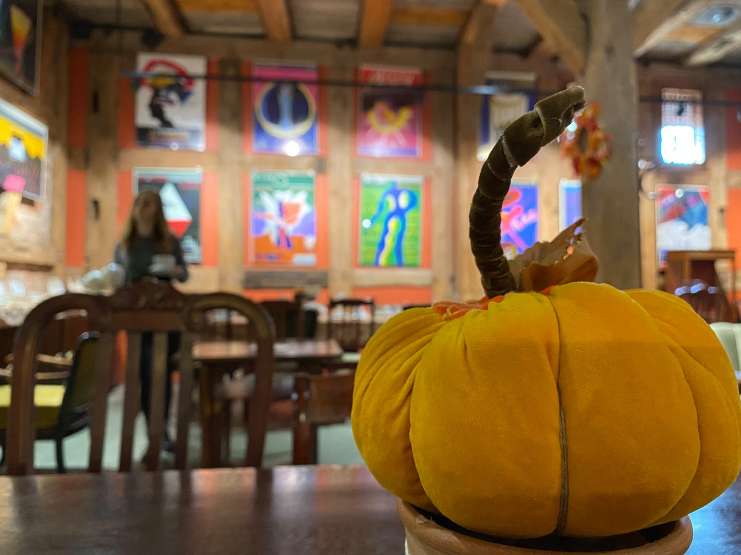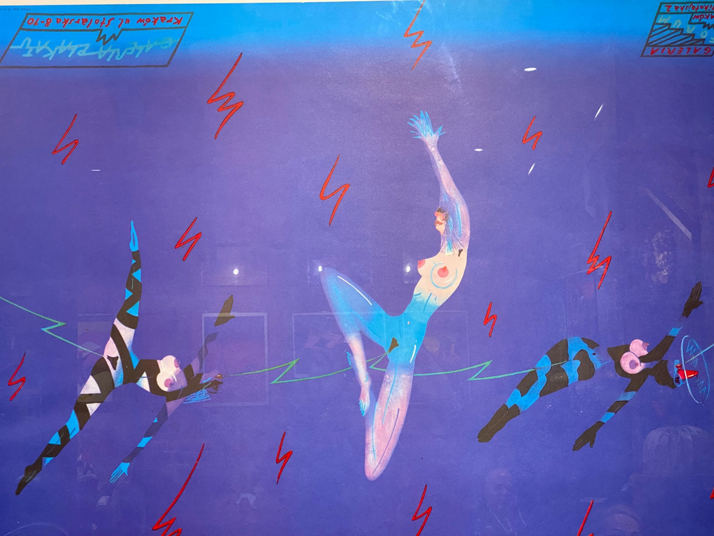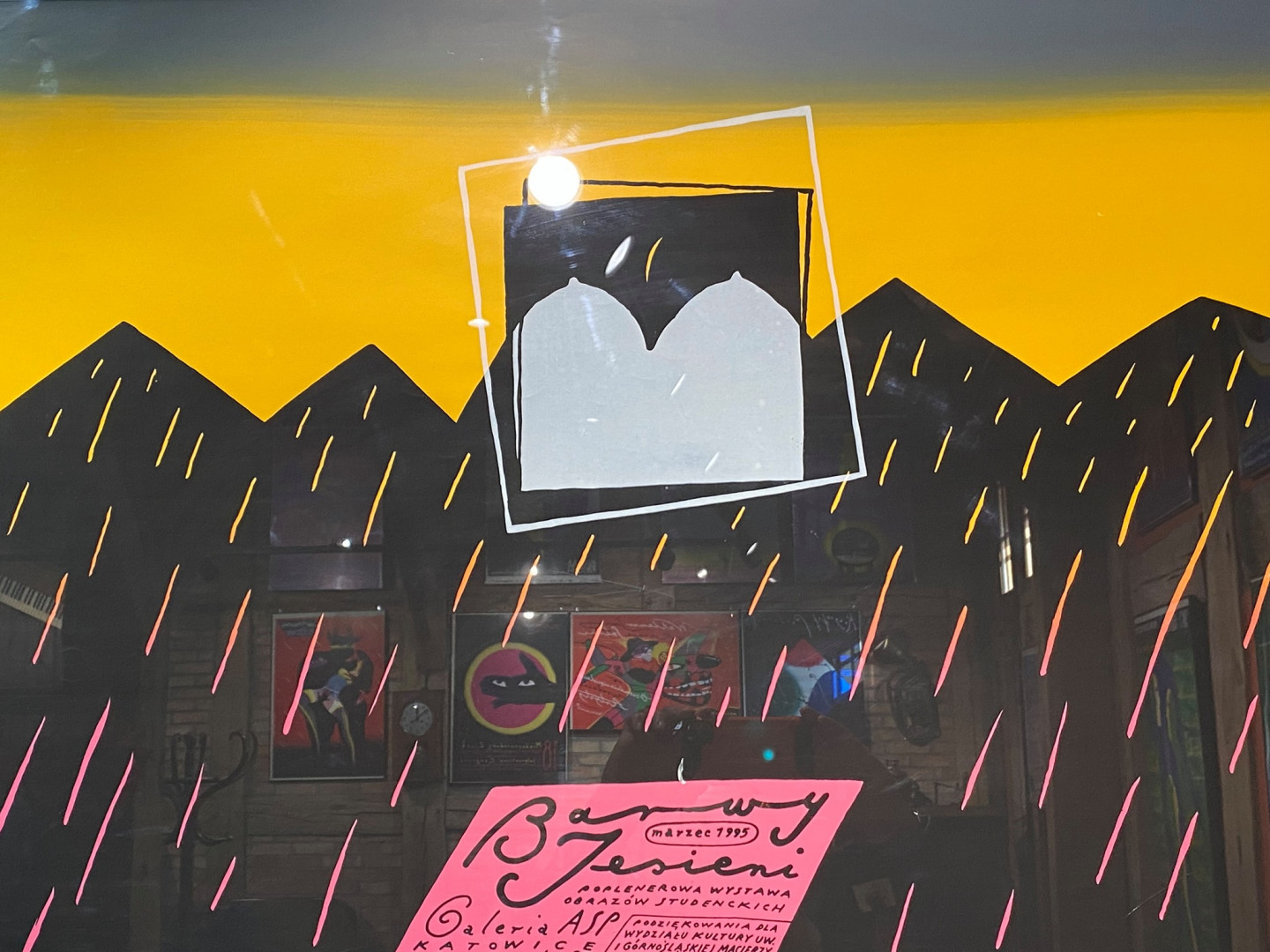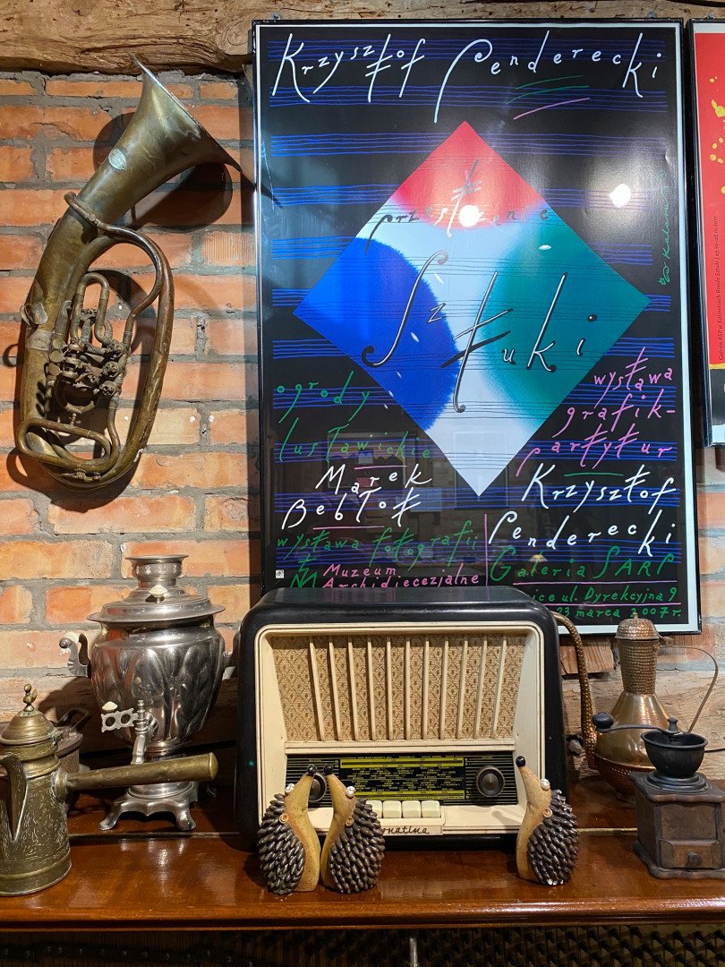 Herbaciarnia w Spichlerzu Richtera, wystawa XXVI edycji Polskiej Szkoły Plakatu, tym razem prace klasyka Romana Kalarusa.