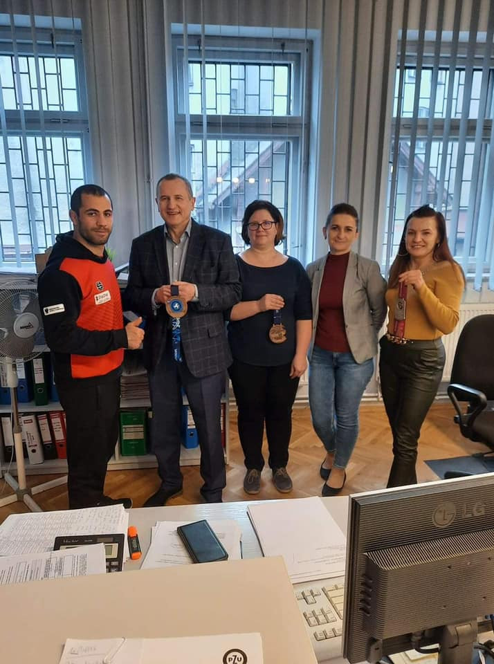 Rozbrzmiewa jeszcze echo sukcesu Gevorga Sahakyan na Mistrzostwach świata w Oslo. Jego brązowy medal sprawił wielu osobom dużo satysfakcji. Niewątpliwie jedną z nich jest wieloletni przyjaciel kartuskich zapasów – Pan Jan Koszałka, prezes PHU Koszałka. Pan Jan jest jedną z osób najdłużej współpracująca z sekcją zapaśniczą GKS Cartusia Kartuzy. Śmiało można powiedzieć, że jakaś część sukcesu jest także jego autorstwa. Więc cóż mógł zrobić nasz mistrz ? Po prostu podziękować, podzielić się wrażeniami i zrobić pamiątkowe fotografie. Jak zawsze w tej firmie wszyscy z uśmiechem, sympatyczni, widać, że sukces wszystkim przypadł do gustu. Tą drogą zawodnik i trenerzy składają serdeczne podziękowania. Mamy nadzieję, że jednym z medali, które zaprezentujemy w przyszłości będzie medal olimpijski z Paryża.