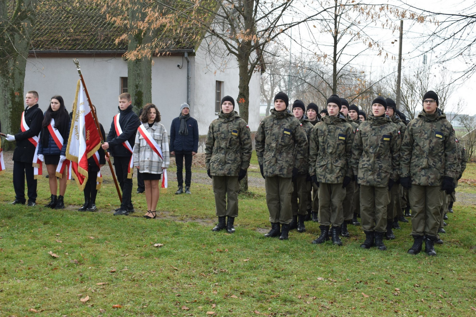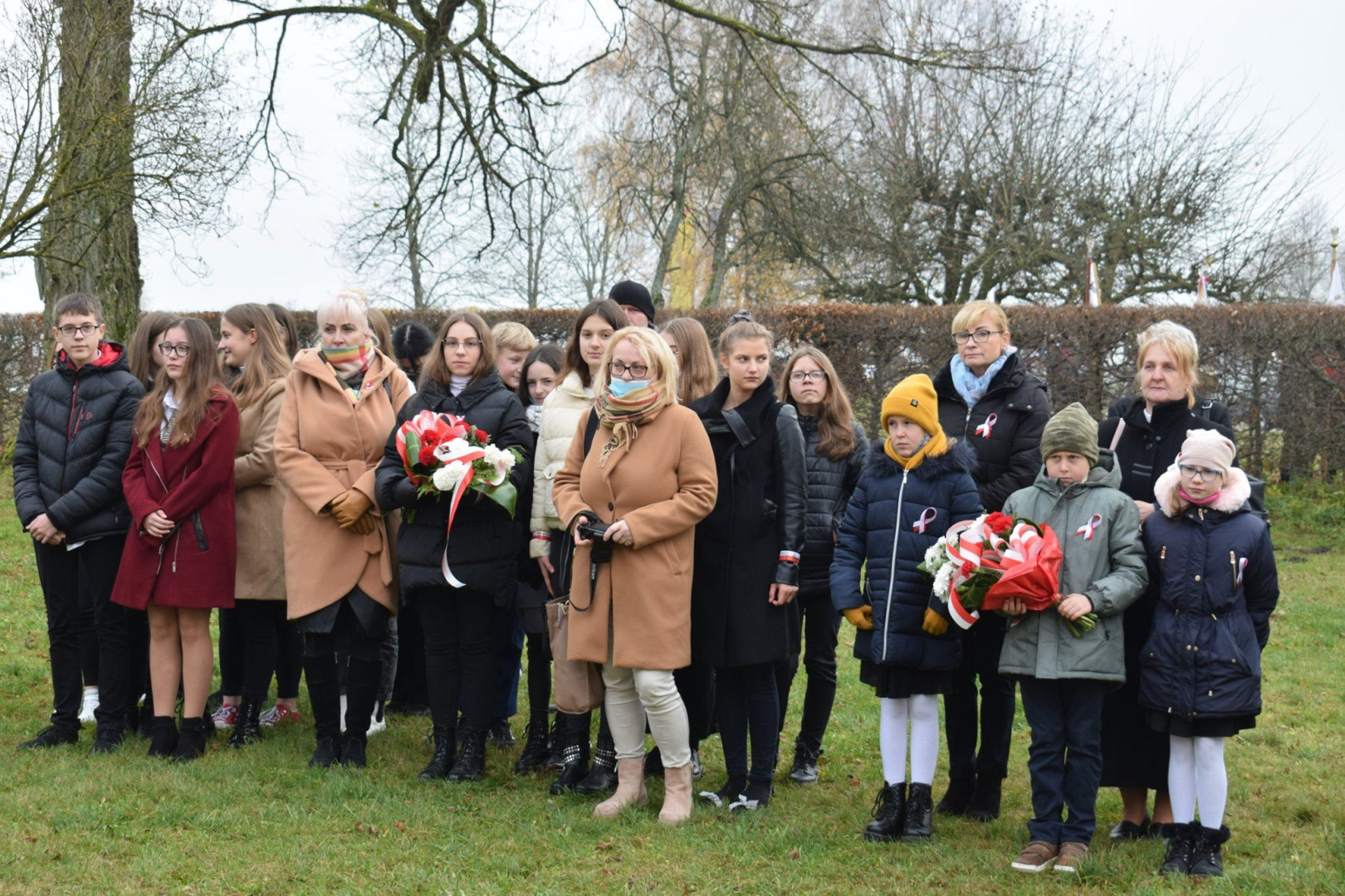 Po pierwszej części uroczystości złożono wiązanki kwiatów pod pomnikiem gen. Józefa Wybickiego.