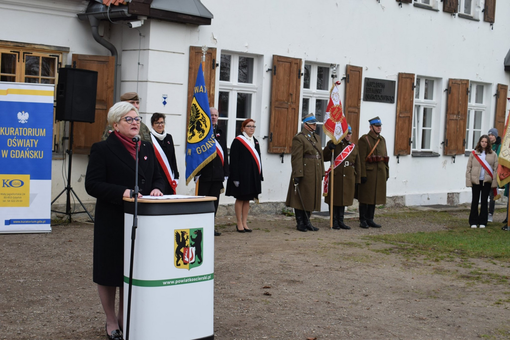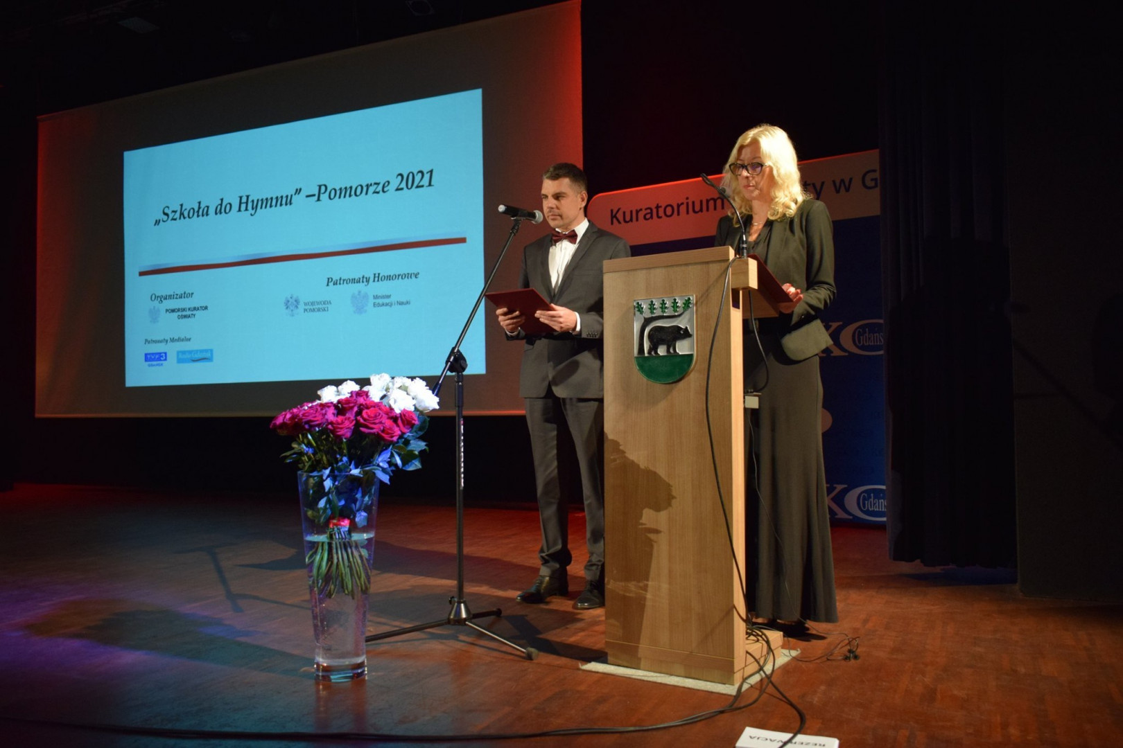Pomorski Kurator Oświaty Pani Małgorzata Bielang po otwarciu uroczystości przedstawiła założenia akcji „Szkoła do Hymnu” i podkreśliła jej szczególny charakter w tak wyjątkowym miejscu, jakim jest Muzeum Hymnu Narodowego. Odczytała list Ministra Edukacji i Nauki prof. Przemysława Czarnka skierowany do uczestników wydarzenia.