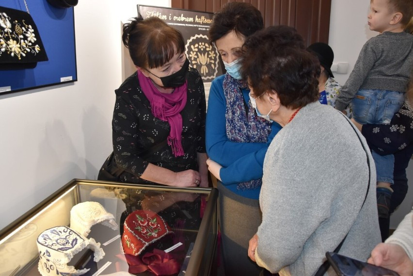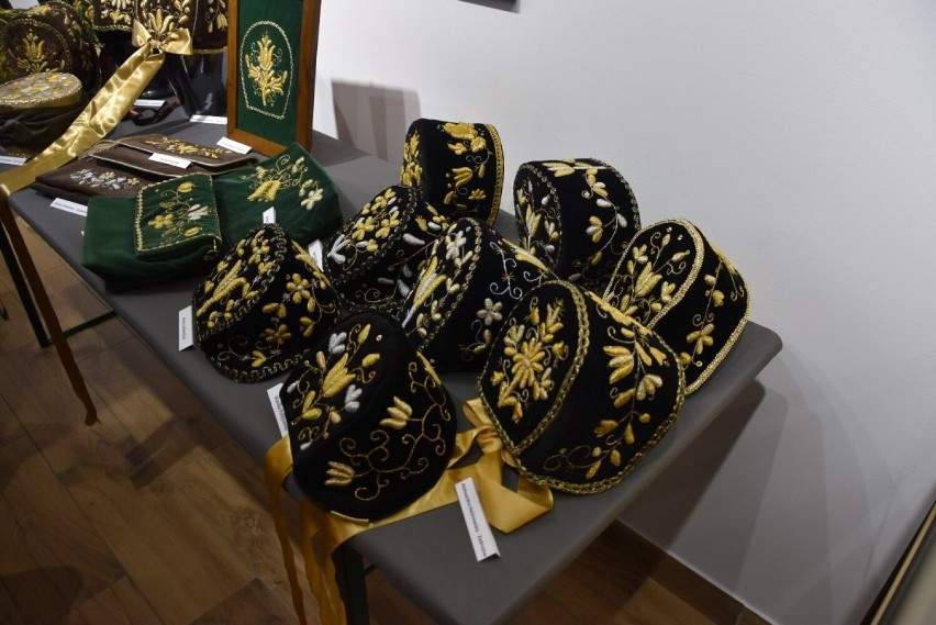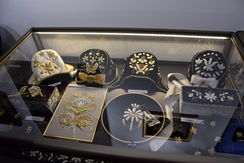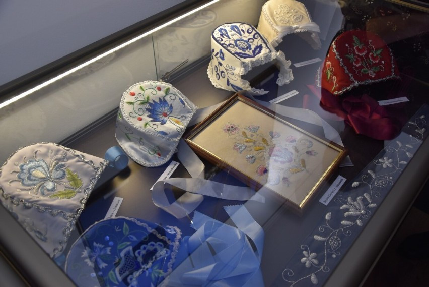 Na wystawie zaprezentowano pięknie zdobione czepce, krawaty, muszki, torebki, opaski, obrazy, sakiewki, szkatułki, pasy i strój kaszubski. Tradycyjne, kaszubskie wzory wyszyte złotą i srebrną nicią na czarnym, bordowym i zielonym aksamicie to prawdziwy majstersztyk rękodzieła regionalnego.