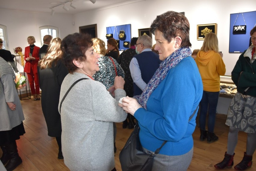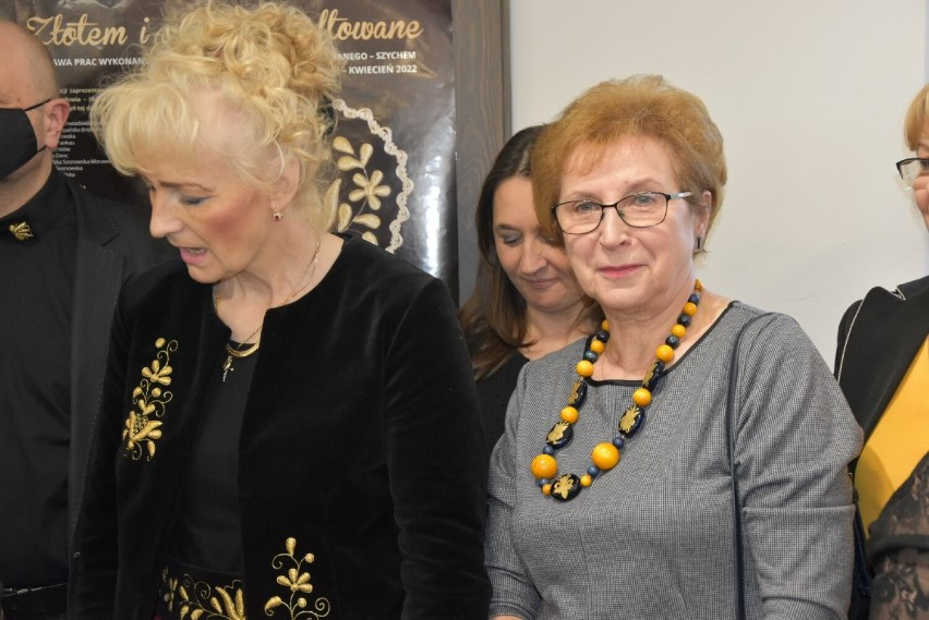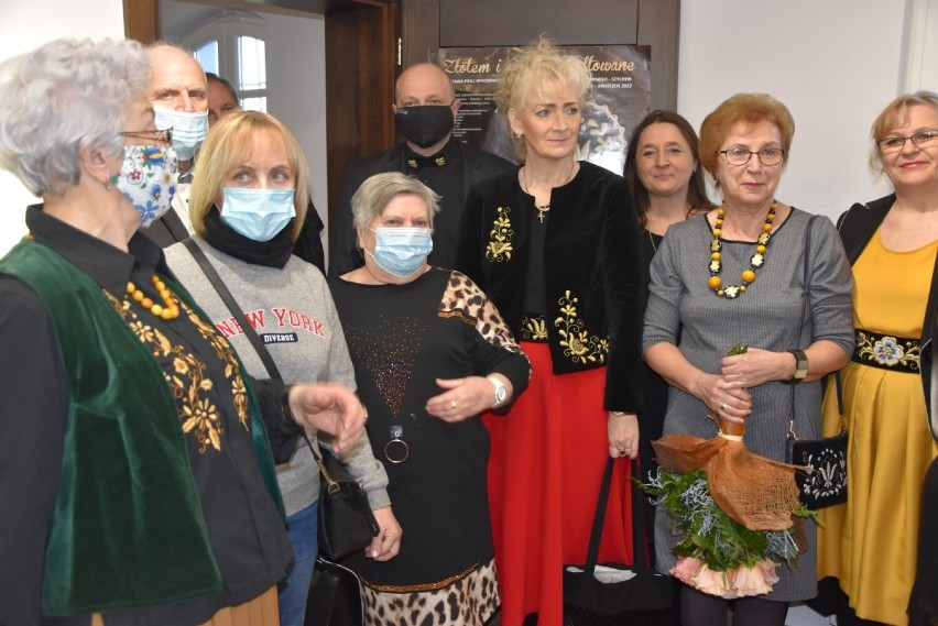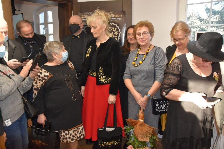 Na wystawie zaprezentowano prace uczestniczek kursu złotogłowia – złotnicy – haftu użytkowego. Instruktorką i inicjatorką kursu była Danuta Niechwiadowicz. Niestety, nie mogła być obecna na otwarciu, ale powiedziała kilka ciepłych słów online, przede wszystkim dziękując Barbarze Kąkol, dyrektor Muzeum Kaszubskiego w Kartuzach, za zorganizowanie tej wyjątkowej wystawy i udostępnienie miejsca na eksponaty.