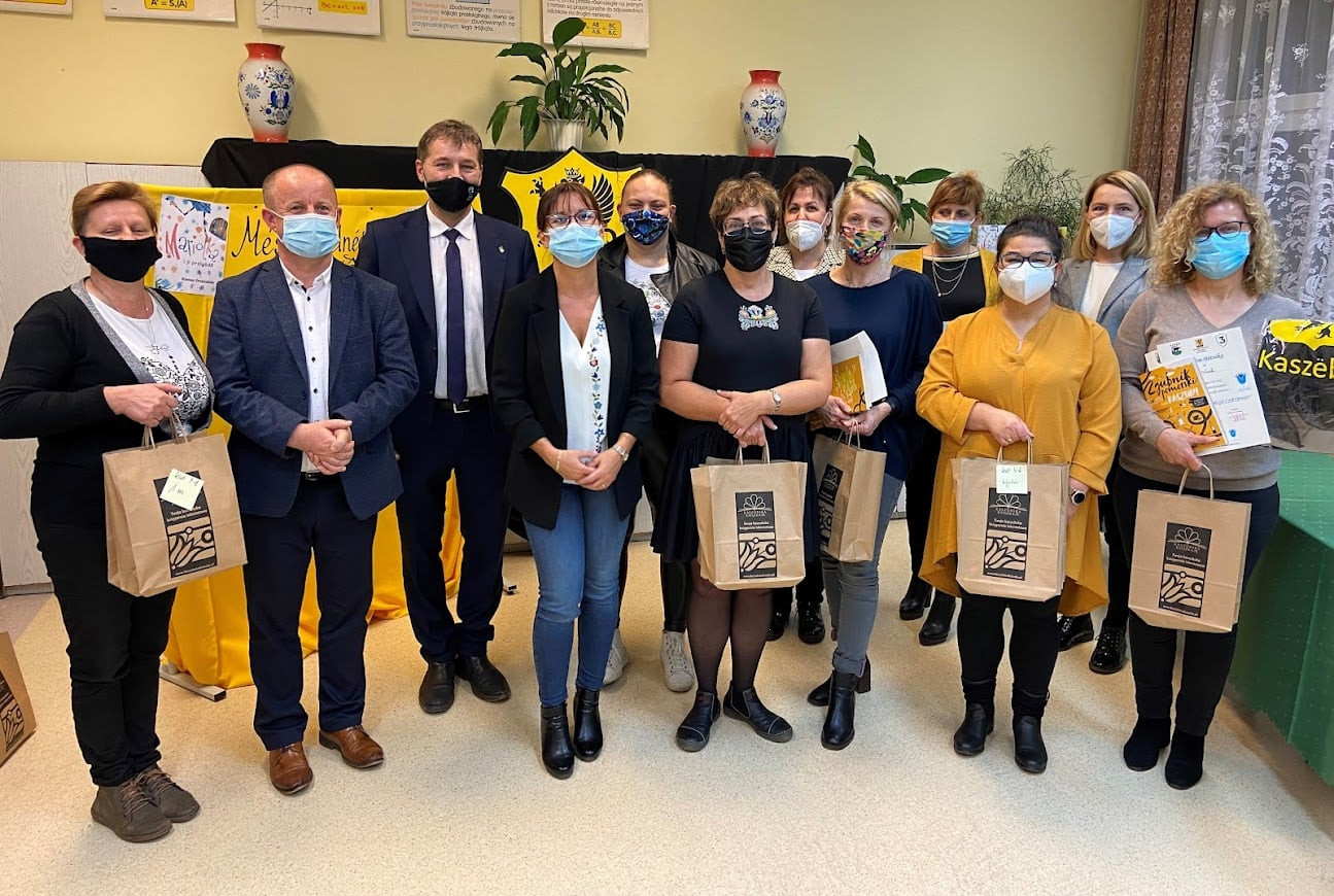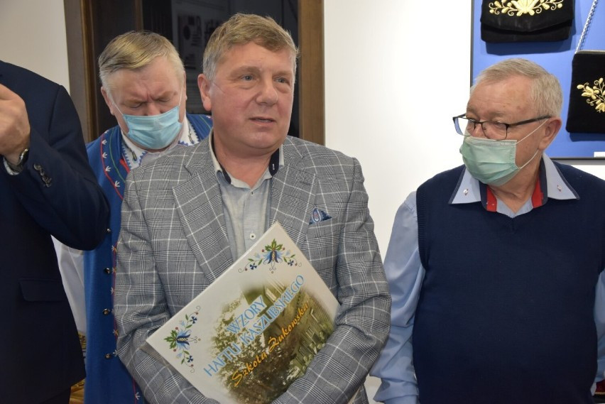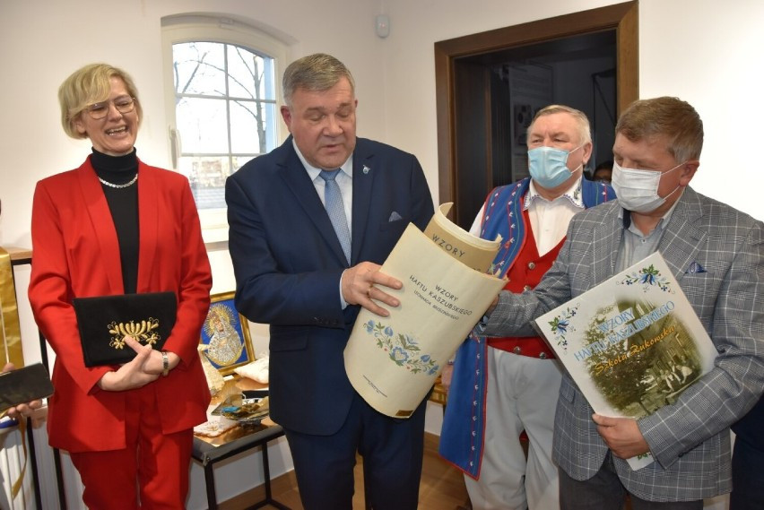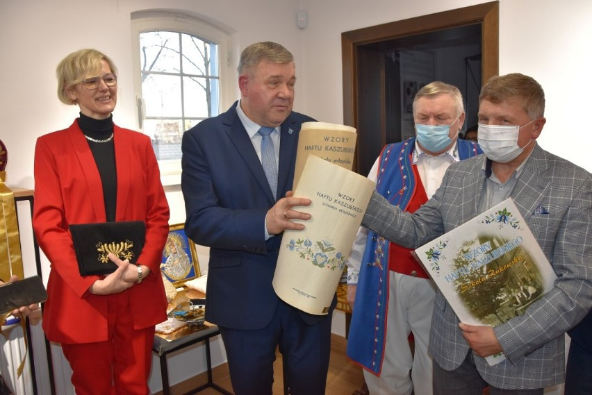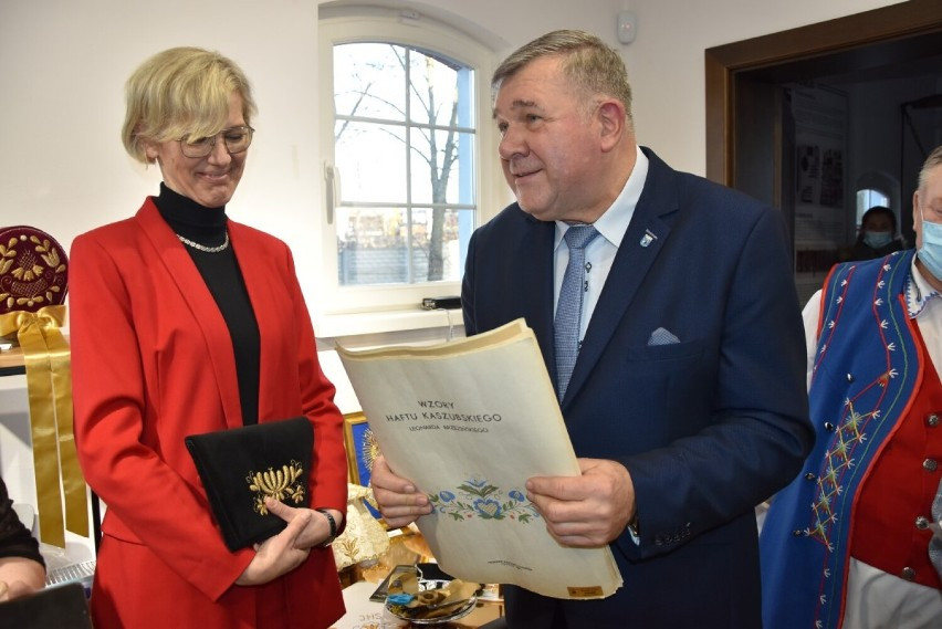 Burmistrz wręczył też na ręce dyrektor Barbary Kąkol archiwalne wydawnictwa z wzorami haftu kaszubskiego wydane przez Leonarda Brzezińskiego, Szkołę Wdzydzką oraz Zofię Formela z Kartuz.