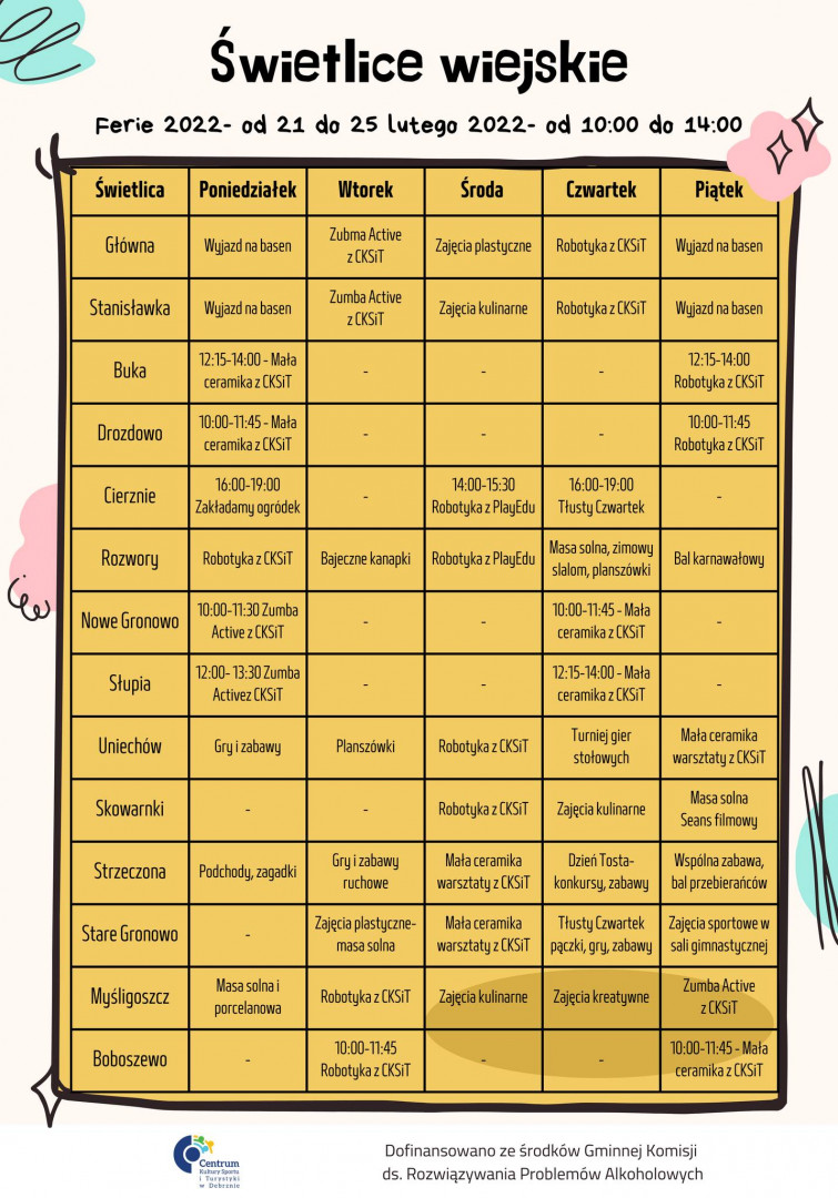 Cyt.: "(...) Zapraszamy wszystkie dzieci w wieku szkolnym (od 7 do 12 lat), które chcą wziąć udział w feriach w Centrum Kultury do zapisów!