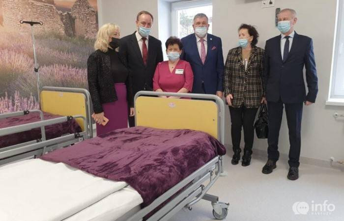 Warto podkreślić, że w nowym oddziale zabezpieczono miejsca dla 29 osób w 2 i 3 osobowych salach z łazienkami, które są przystosowane do potrzeb osób niepełnosprawnych ze szczególnym uwzględnieniem seniorów. Szerokie korytarze mają zapewnić swobodną komunikację między pomieszczeniami pacjentom, którzy poruszają się na wózkach. Ponadto, oddział został wyposażony w nowoczesny system alarmowy i sygnalizacji przywoławczej.