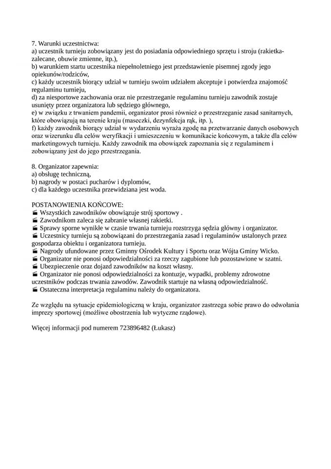 Regulaminy poszczególnych turniejów dostępne są w zdjęciach poniżej ????".