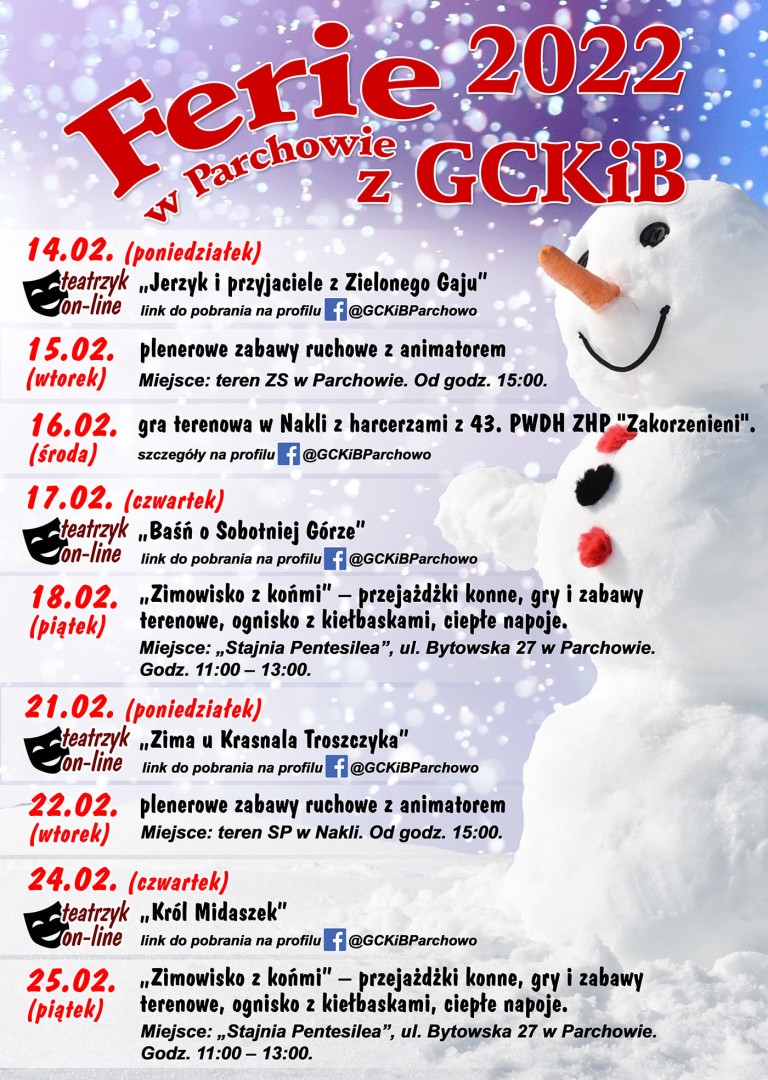Z informacji, którą podaje strona internetowa Sołectwo Parchowo, Gminne Centrum Kultury i Biblioteka w Parchowie zaprasza do zabawy nie tylko dzieci, ale także całe rodziny! Szczegóły na plakacie: