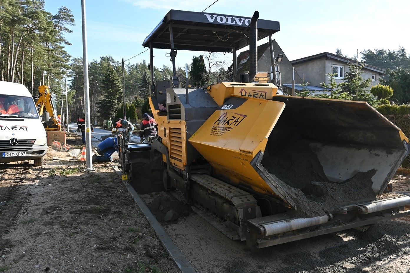 Cyt.: "(...) Po utwardzeniu, odwodnieniu, montażu sieci i lamp oświetleniowych, realizowane są prace związane z położeniem nowej nawierzchni drogi.