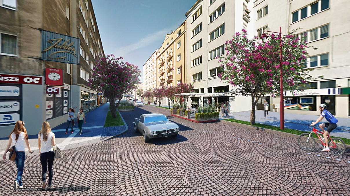 Co się zmieni? Rozwiązania projektowe przede wszystkim wprowadzają poprawę warunków dla ruchu pieszego – uwzględniając też potrzeby ruchu kołowego i rowerowego. Istotne będzie uspokojenie ruchu, które zapewni wprowadzenie na przebudowywanym odcinku strefy prędkości do 20 kilometrów na godzinę. Uwzględniono nasadzenia nowej zieleni czy nową małą architekturę. (...)"