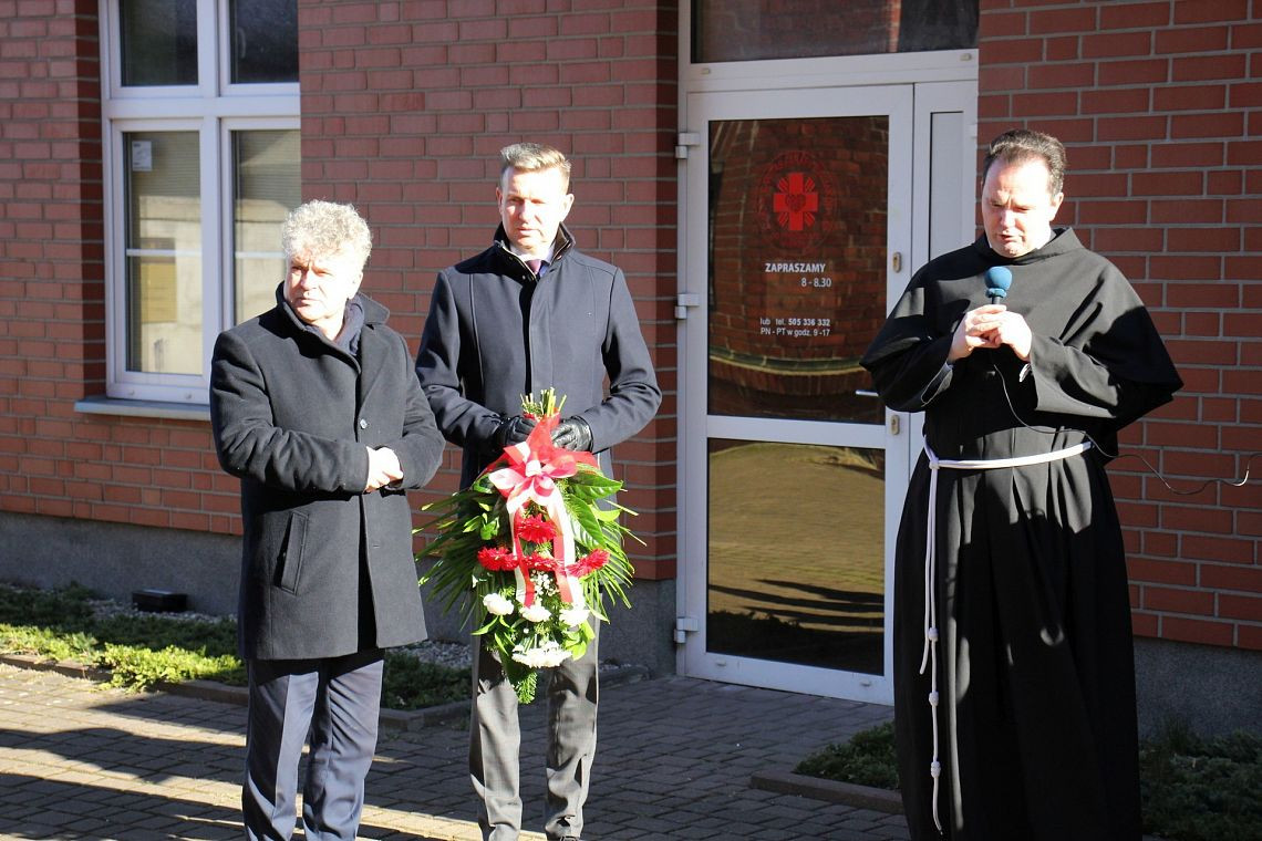 Cyt.: "(...) Po mszy i krótkiej modlitwie złożono kwiaty i zapalono znicze pod tablicą umieszczoną na budynku klasztoru parafii św. Jakuba Ap. Napis na tablicy brzmi: „Pamięci wydarzeń i osób zamordowanych przez Sowietów 10 marca 1945: ks. Roberta Königa, ks. Franciszka Szynkowskiego, uciekinierów przed Armią Czerwoną przebywających na terenie plebanii kościoła”. (...)"