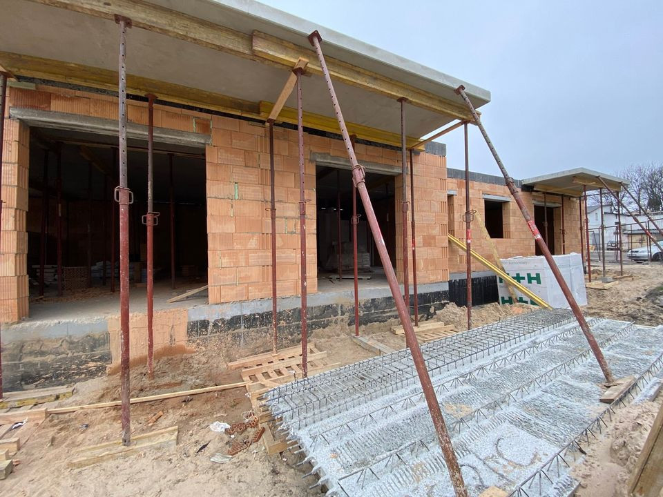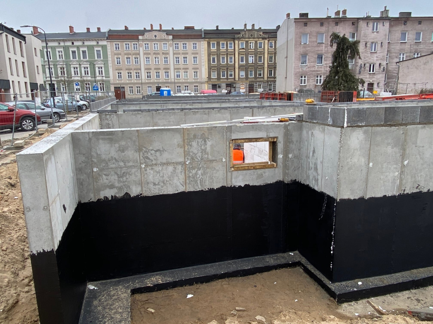 Cyt.:" Zza ogrodzenia placu budowy zauważyć można wyrastające piętro budynku C, w którym znajdzie się docelowo 21 mieszkań. Oprócz tego w budynku B, w którym znajdą się 22 mieszkania, trwa budowa podpiwniczenia budynku. Ponadto w nowym kompleksie budynków komunalnych zostanie zbudowany budynek A mieszczący 14 lokali mieszkalnych. (...)