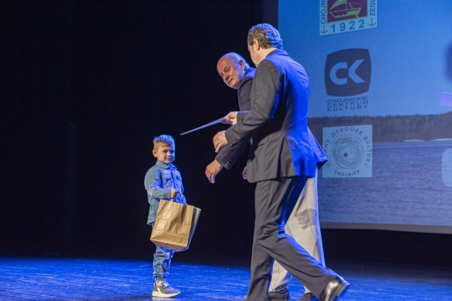Cyt.:"(...) Wszyscy nagrodzeni i wyróżnieni otrzymali dyplomy oraz nagrody rzeczowe z rąk dyrektora Chojnickiego Centrum Kultury Radosława Krajewicza oraz Krzysztofa Pestki, Komandora Chojnickiego Klubu Żeglarskiego, a uroczystość uświetnił występ zespołu "Ciągle na Fali". Nagrodzone i wyróżnione prace zostały wyeksponowane na wystawie w Chojnickim Centrum Kultury. Pozostałe prace można odbierać w ChCK do końca kwietnia 2022 roku. (...)"